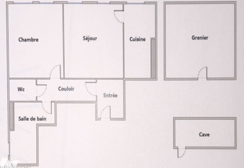 Entrée. Cuisine indépendante équipée. Salon séjour lumineux. 2 chambres. Salle d’eau. Cave