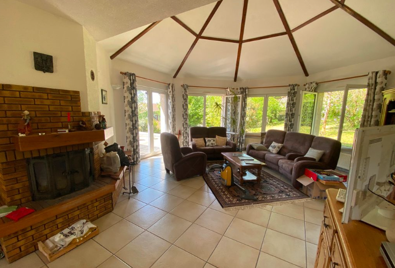 L’entrée mène à l’étage principal où la maison séduit par ses espaces de vie généreux comprenant une cuisine équipée, un salon / salle à manger convivial, ainsi qu’un grand séjour chaleureux agrémenté d’une cheminée avec insert, idéal pour créer une atmosphère cocooning..
